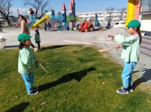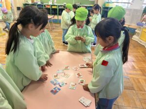 伝統的なあそびに触れながら、友だちと一緒にあそぶ楽しさや、やりとりの面白さを感じているようです。